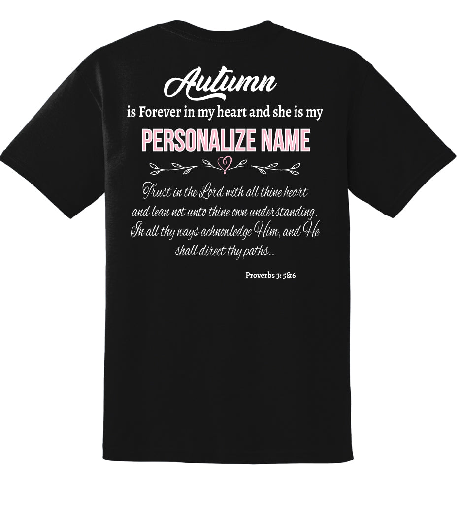 If you do not choose a personlized name on back your shirt we will print the bible verse only