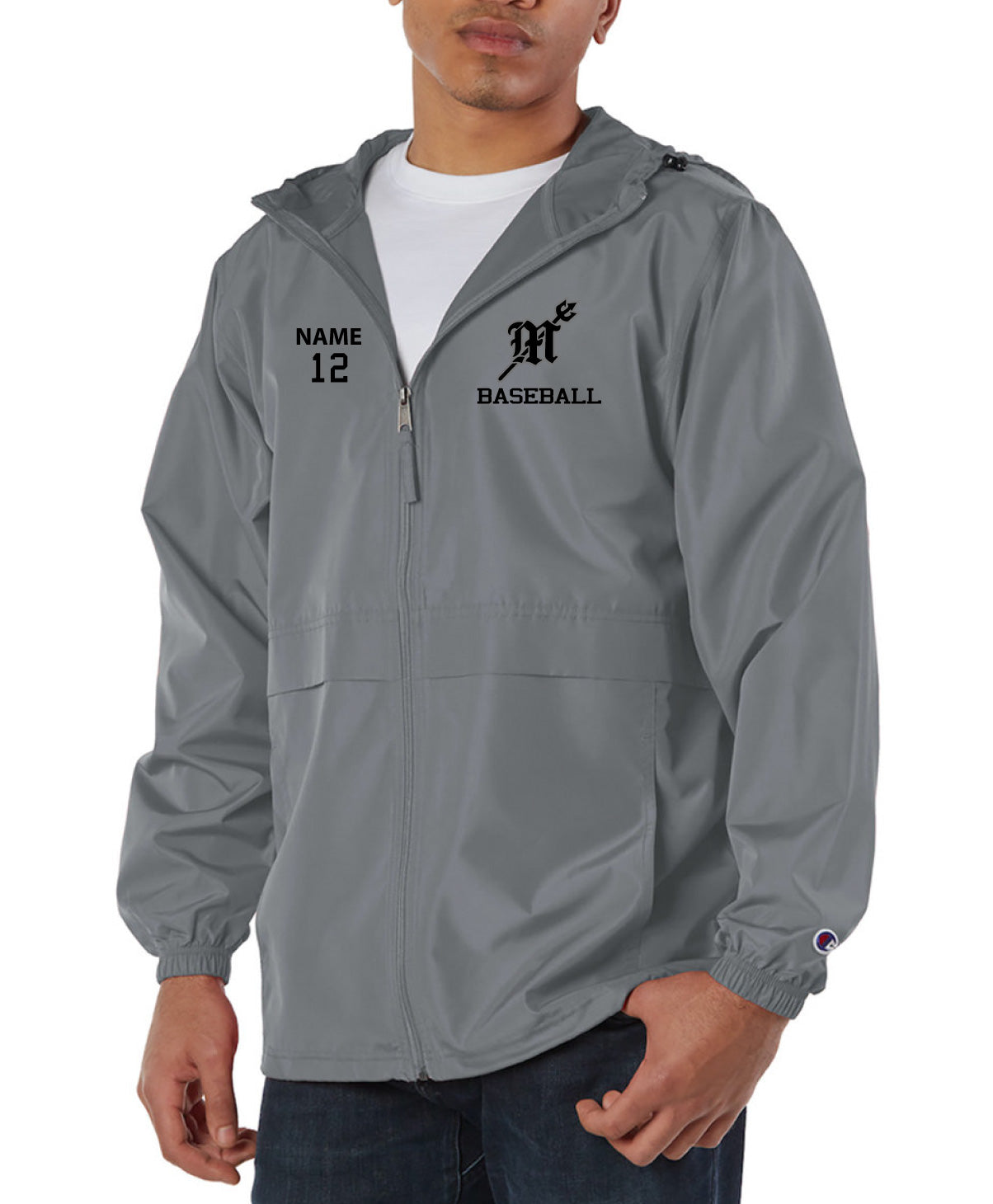 - Champion "C" patch on left sleeve